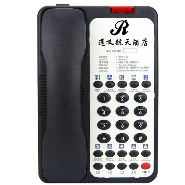 诺巴玛A8电话机专为高中档大酒店设计,独有的大面板空间可印刷酒店店标,订房电话和地址等等,很好的展示了酒店的风格,大大提升酒店的档次。合作客户包括知名的戴斯酒店,维也纳、 喜来登、海南天佑,7天酒店,速8酒店 格林豪泰 万豪酒店等。丝网印刷永不掉色,防水耐磨,永不掉色,一次投资永久使用,产品质保三年,百日换新!是酒店客房电话机的首选品牌