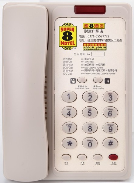 诺巴玛A9电话机专为高中档大酒店设计,独有的大面板空间可印刷酒店店标,订房电话和地址等等,独有的二组一键通按键方便简洁。LOGO定制可以很好的展示了酒店的风格,大大提升酒店的档次。合作客户包括知名的戴斯酒店,维也纳、 喜来登、海南天佑,7天酒店,速8酒店 格林豪泰 万豪酒店等。丝网印刷永不掉色,防水耐磨,永不掉色,一次投资永久使用,产品质保三年,百日换新!是酒店客房电话机的首选品牌