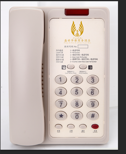 诺巴玛A9电话机专为高中档大酒店设计,独有的大面板空间可印刷酒店店标,订房电话和地址等等,独有的二组一键通按键方便简洁。LOGO定制可以很好的展示了酒店的风格,大大提升酒店的档次。合作客户包括知名的戴斯酒店,维也纳、 喜来登、海南天佑,7天酒店,速8酒店 格林豪泰 万豪酒店等。丝网印刷永不掉色,防水耐磨,永不掉色,一次投资永久使用,产品质保三年,百日换新!是酒店客房电话机的首选品牌