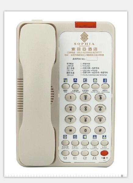 诺巴玛A8电话机专为高中档大酒店设计,独有的大面板空间可印刷酒店店标,订房电话和地址等等,很好的展示了酒店的风格,大大提升酒店的档次。合作客户包括知名的戴斯酒店,维也纳、 喜来登、海南天佑,7天酒店,速8酒店 格林豪泰 万豪酒店等。丝网印刷永不掉色,防水耐磨,永不掉色,一次投资永久使用,产品质保三年,百日换新!是酒店客房电话机的首选品牌