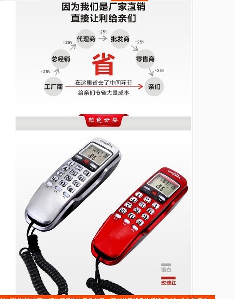 诺巴玛挂壁式座机家用酒店床头壁挂小分机 免电池来电显示电话机