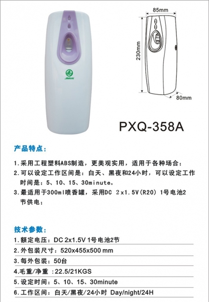 1.喷射时间间隔为: 5、10、15、30分钟,每工作一次,喷香一次