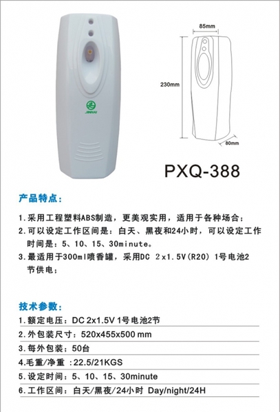 1.喷射时间间隔为: 5、10、15、30分钟,每工作一次,喷香一次