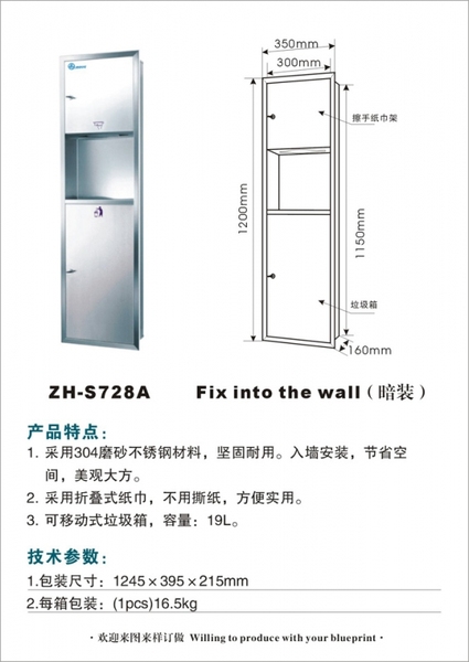1.采用SUS304磨砂不锈钢材料,坚固耐用。入墙安装,节省空间,美观大方