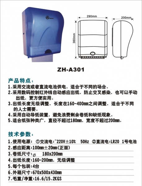 2.采用数码控制红外线自动感应出纸,防止交叉感染,也可以手动出纸,更方便实用.