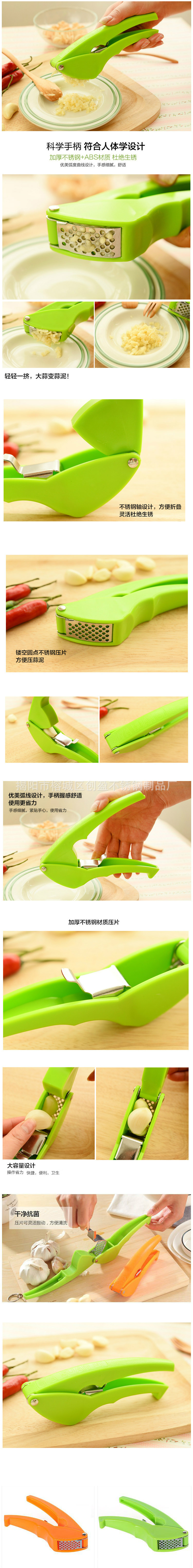 品名:塑柄压蒜器 包装:简装 装箱:240/箱 颜色:绿色/橙色