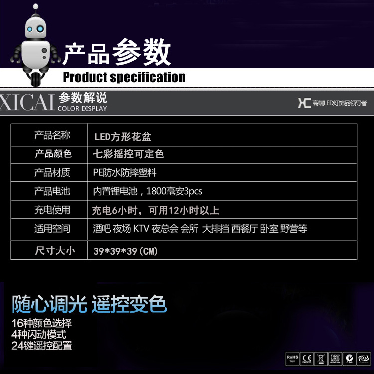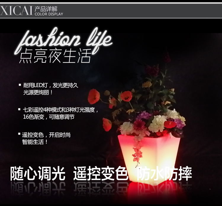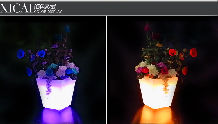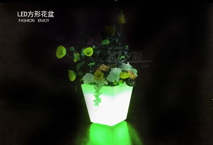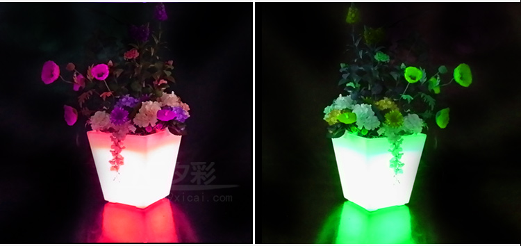 七彩遥控LED发光花盆酒店大厅装饰种植四方花盆LED发光盆