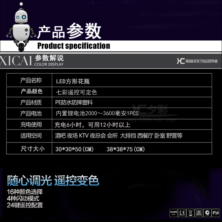 时尚简约环保实用led花盆 酒吧KTV落地装饰花瓶灯