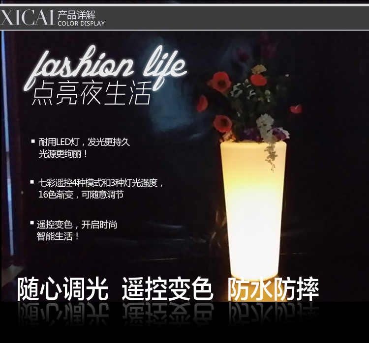 LED发光花盆户外别墅花园装饰七彩遥控变色防水塑料发光花盆