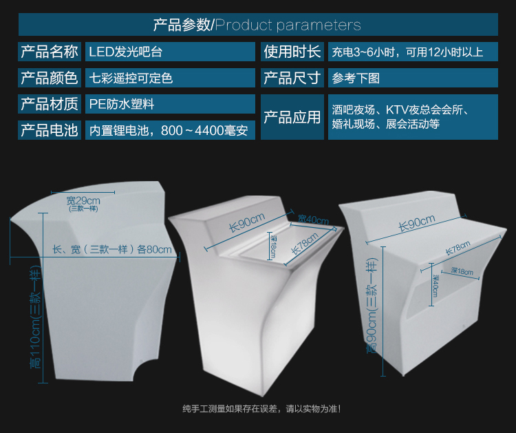 直销led七彩酒吧吧台ktv夜店七彩遥控发光家具吧台组合 产品详情