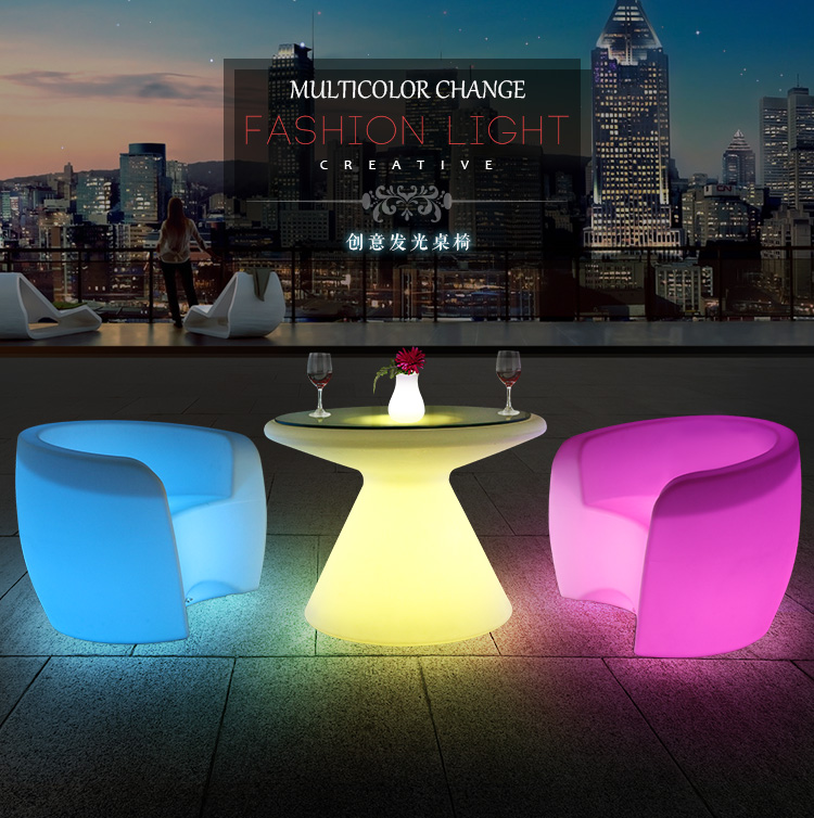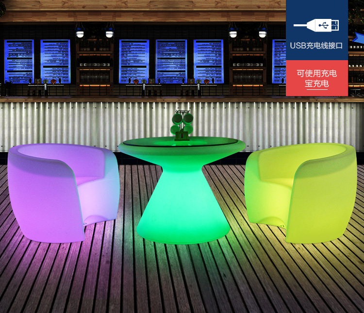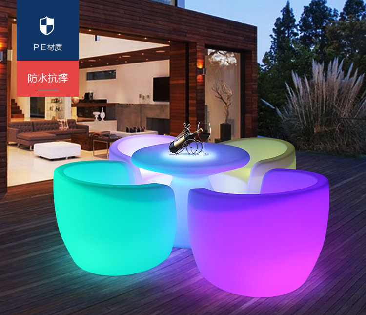 现代简约LED发光家具酒吧吧台咖啡厅圆桌简易户外发光茶几