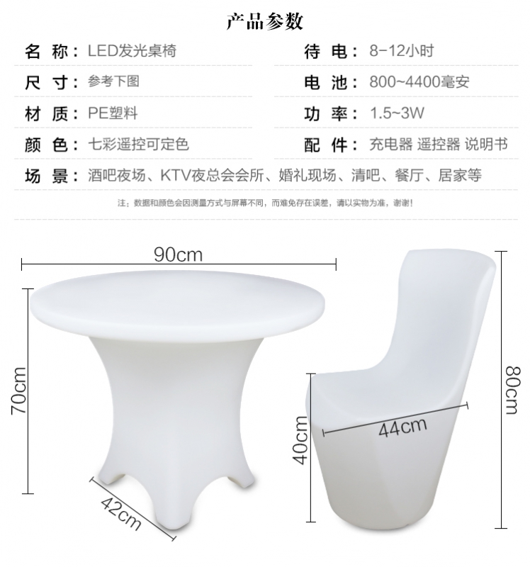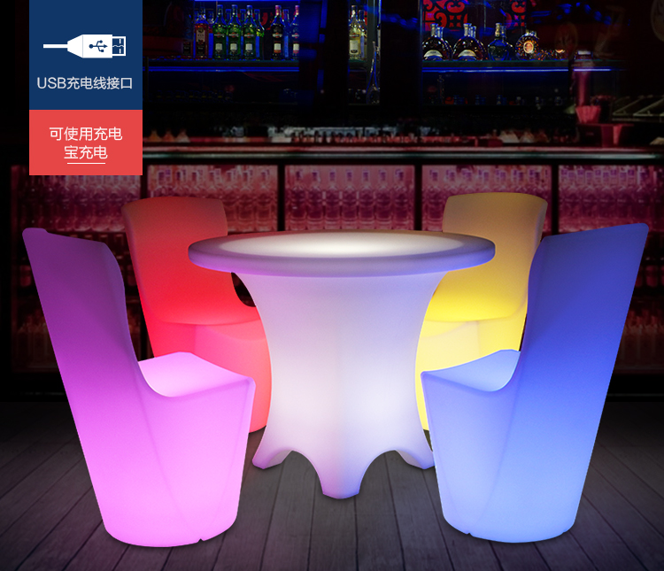 led发光桌椅餐厅桌椅组合 户外阳台防水餐桌咖啡厅茶几 产品详情