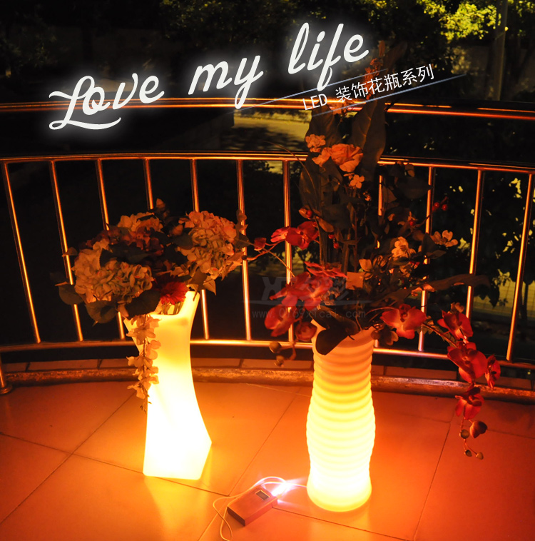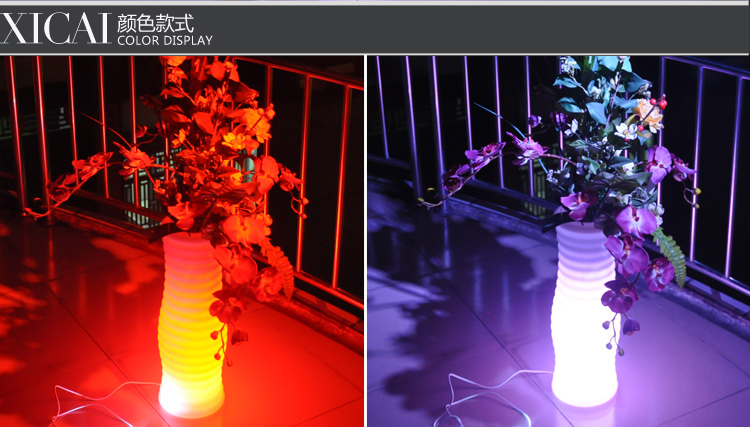 创意LED充电彩色花瓶 酒店酒吧七彩装饰花瓶卧室遥控发光装饰 产品详情