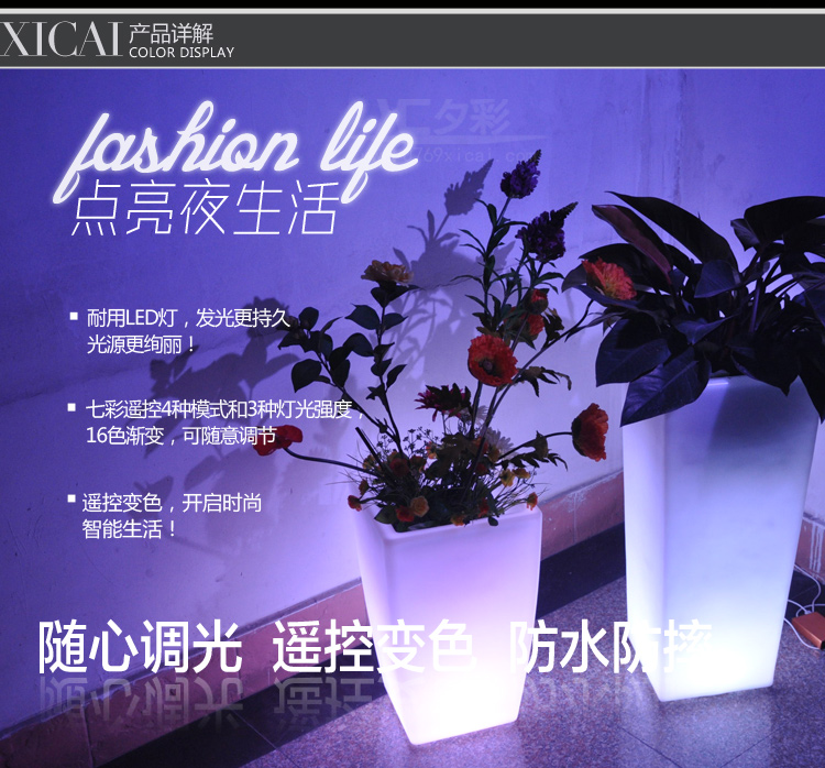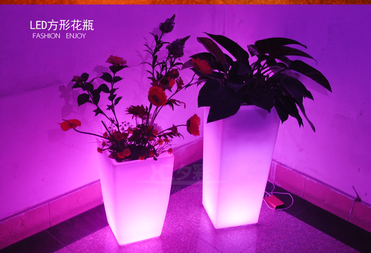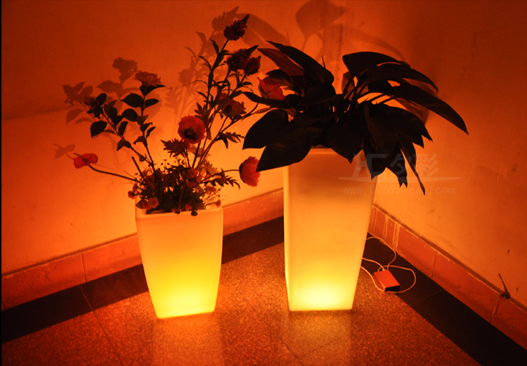 时尚创意LED发光四方高花盆 酒店酒吧写字楼盆景婚庆发光装饰 产品详情