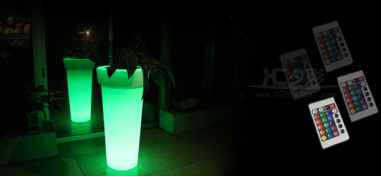 产品外壳采用PE环保材料滚塑一次成型,利用LED的色彩模式(RGB)原理,可用遥控器控制颜色慢速、快速变化,红、橙、黄、绿、青、蓝、紫、种颜色和亮度。