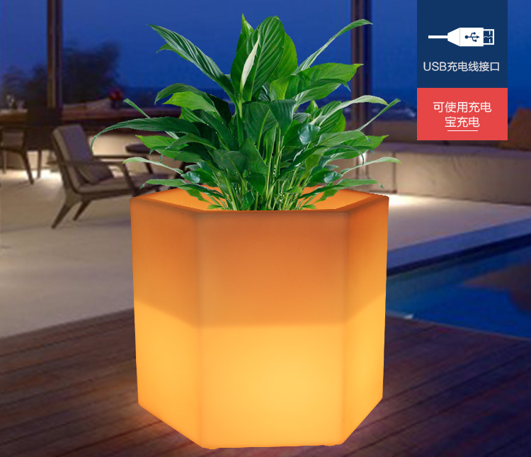 简约现代时尚LED发光花盆落地客厅欧式装饰摆件