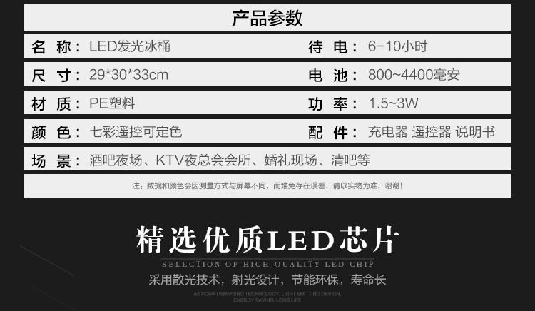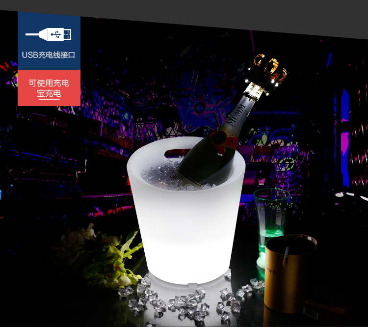 酒吧冰桶 防摔pe塑料led发光手提冰桶充电七彩KTV香槟桶 产品详情