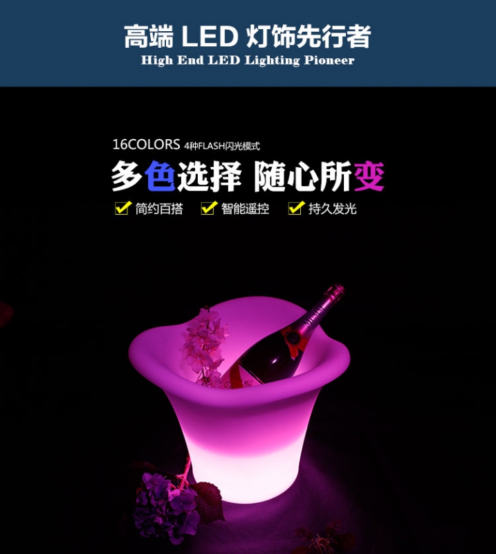 简约led花瓣形冰桶酒吧ktv香槟红酒桶遥控七彩防摔塑料冰桶 产品详情