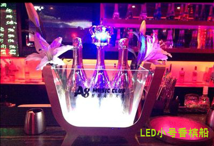 厂家直销led酒吧发光冰桶12支香槟船 亚克力香槟啤酒冰桶