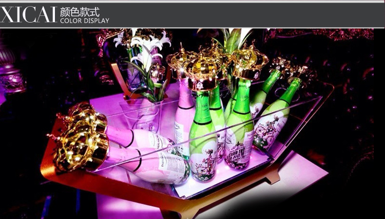 酒吧三层洋酒展酒柜亚克力冰桶LED充电七彩香槟酒座三层发光桶