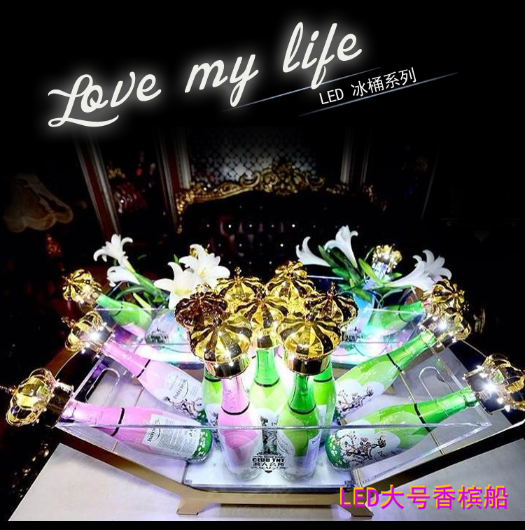 厂家直销led酒吧发光冰桶12支香槟船 亚克力香槟啤酒冰桶 产品详情