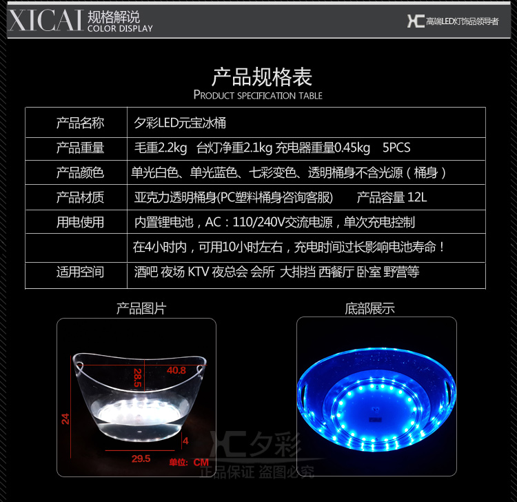 创意LED香槟桶冰粒桶发光冰桶大元宝啤酒桶调酒 工具酒吧 产品详情