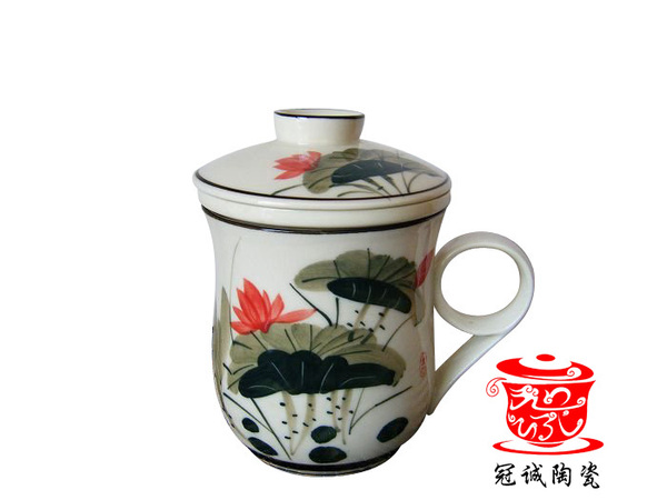 【冠诚陶瓷】茶具手彩荷花茶隔杯