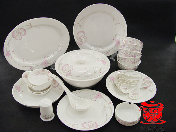 【冠诚陶瓷】骨质瓷餐具46头红粉佳人