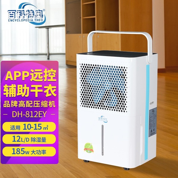 百科特奥12升除湿机DH-812EY除湿机除湿原理:本产品属冷冻式除湿机,整机有压缩机、热交换器、风扇、机壳及控制器组成,其工作原理是:由风扇将潮湿空气抽入机内,经过制冷系统(压缩机,蒸发器,冷凝器)相互作用下凝结成霜,系统自动升温化霜成水流入盛水箱,产生出干燥空气排出,如此循环使室内湿度降低,潮湿空间逐步达到干爽的效果。
