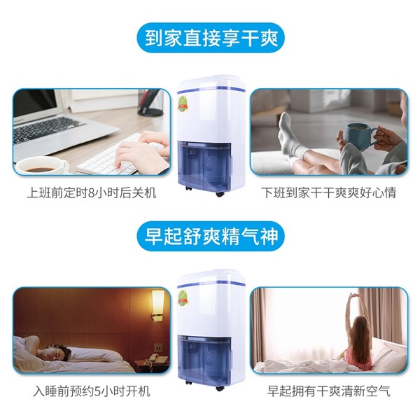 百科特奥36升除湿机DH-836D除湿机除湿原理:本产品属冷冻式除湿机,整机有压缩机、热交换器、风扇、机壳及控制器组成,其工作原理是:由风扇将潮湿空气抽入机内,经过制冷系统(压缩机,蒸发器,冷凝器)相互作用下凝结成霜,系统自动升温化霜成水流入盛水箱,产生出干燥空气排出,如此循环使室内湿度降低,潮湿空间逐步达到干爽的效果。