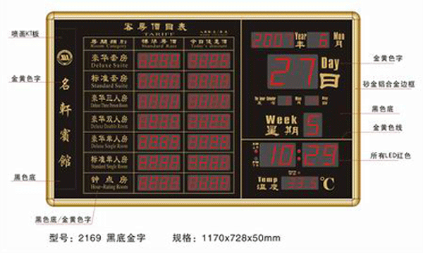 宾馆数码房价牌 产品详情