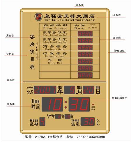 2.全自动日期、时间、温度显示、单排房价信息显示
