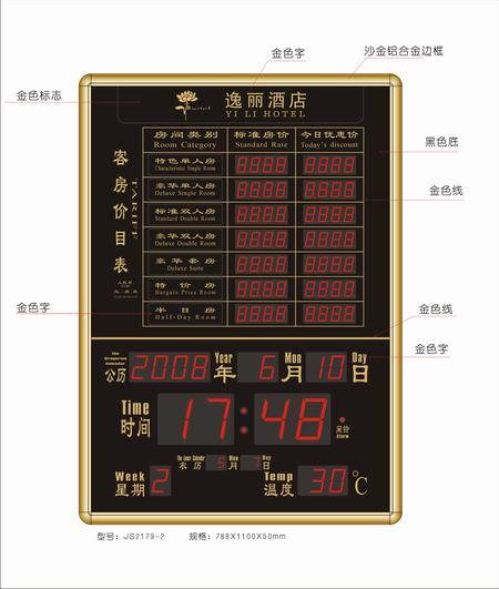 2.全自动日期、时间、温度显示、双排房价信息显示