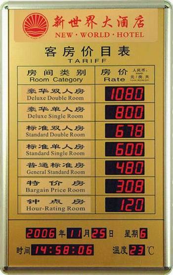 2.全自动日期、时间、温度显示、单排房价信息显示