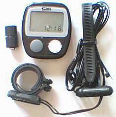1.时间显示; 2.侦测瞬时速度(0.0-99.9KM/H) 3.计算平均速度; 4.记录最大速度; 5.累计里程数(0.00-999.99KM); 6.记录单程里程数; 7.累计运动时间(0:00:00-9:59:59); 8.手动秒钟; 9. 24小时制时钟; 10.省电模式;