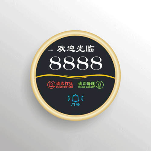 这是一款别具特色液晶房号门铃开关,完全代替了传统式的房门门铃,在高档酒