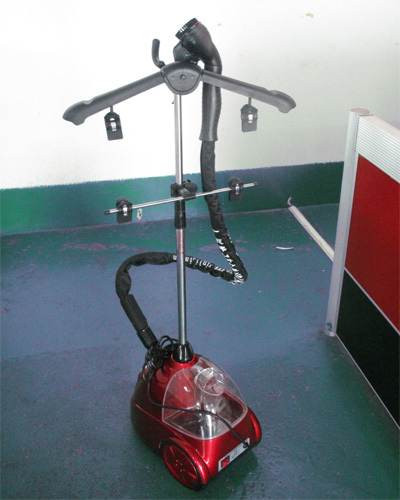 本产品的工作原理:通过98℃的高温蒸汽不断接触衣物,软化衣物的纤维组织,通过“拉”,“压”的动作使衣物平整中顺滑,高温的蒸汽具有清洁消毒和去除异味的作用,用于服装专卖店、宾馆、酒店、家庭等,带有支架,挂钩。只需加水通电45秒,即可快速喷出蒸汽,对准衣物皱处喷射,使衣物平整、柔顺、无须烫衣板,省略了人们平时烫衣的繁琐步骤,无需补水可持续60分钟熨烫。本产品具有双重安全保护装置:过热、缺水时自动断电,防止干烧,请放心使用。本产品适用于任何质料的衣物、窗帘、地毯、床单等的熨烫、消毒和除尘除异味,不会损坏衣物和扣子,使用简单,操作方便,节约能源和时间。
