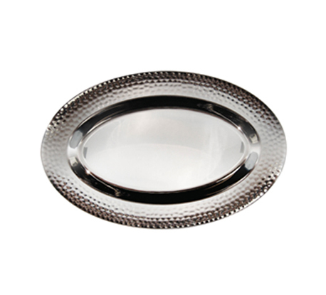 3、产品广泛用于中西餐厅。直接用于食物盘时,可以展示食物模型、蛋糕、蔬果拼盘、菜肴等食物;用于衬托时,在本不锈钢盘中另配陶瓷等材质餐盘,不锈钢与陶瓷相互衬托,高贵富有品味。