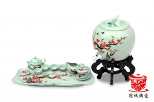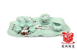 【冠诚陶瓷】手绘茶具11寸红梅方形茶船