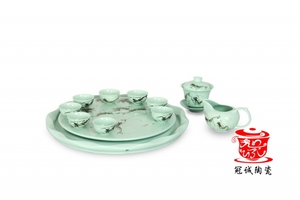 【冠诚陶瓷】手绘茶具13寸莲花转盘