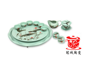 【冠诚陶瓷】手绘茶具11寸荷花方形茶船