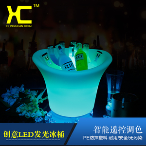 酒吧LED充电发光冰桶创意遥控七彩发光冰桶防摔双层塑料香槟冰