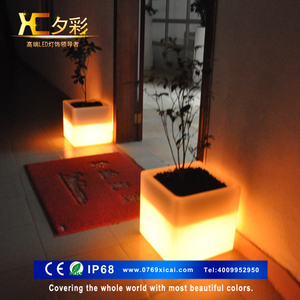 七彩遥控LED发光花盆酒店大厅装饰种植四方花盆LED发光盆