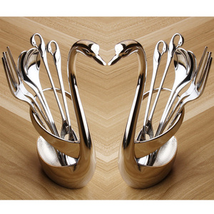 心形锌合金天鹅底座 甜品咖啡叉勺插座 收纳架批发 天鹅座